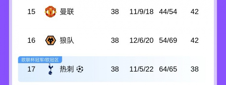 不陪你玩了上賽季第15曼聯(lián)2輪1分第16 第17熱刺開局連勝0失球
